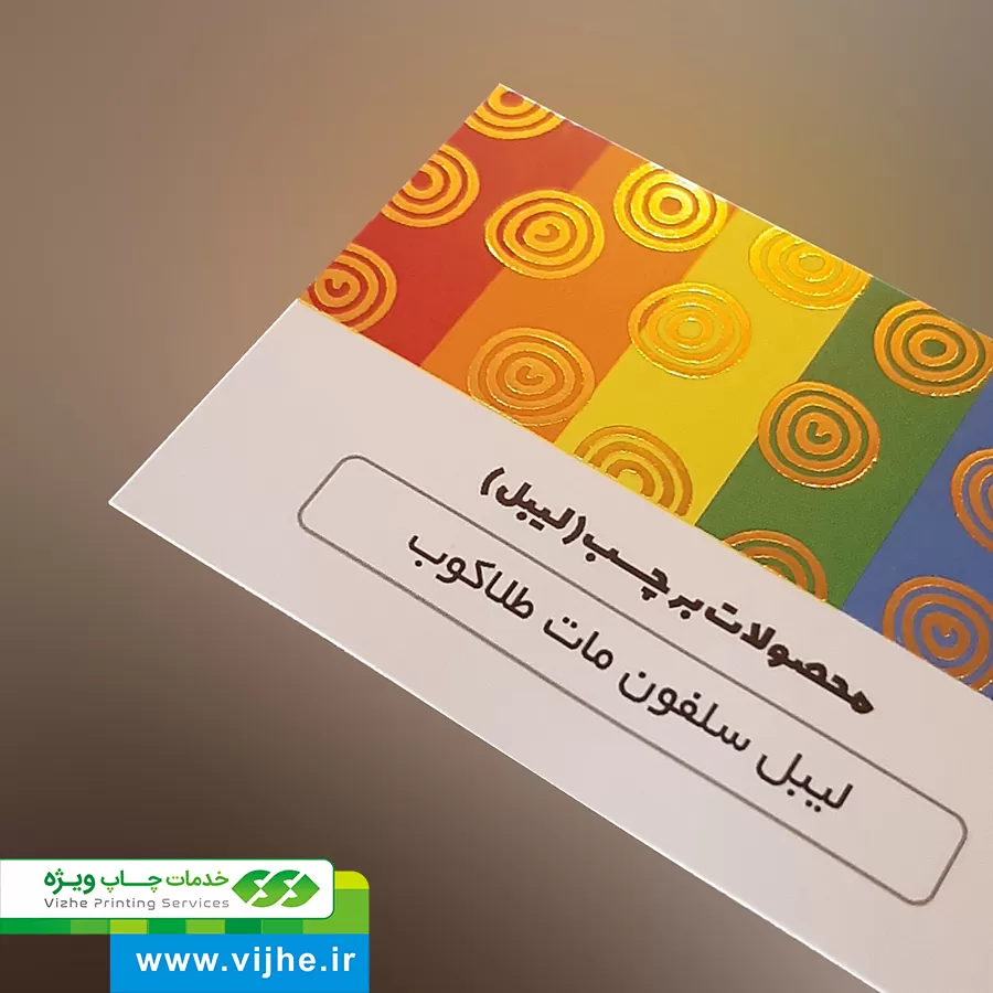 لیبل کاغذی سلفون مات طلاکوب یکی از انواع لیبل‌های شیک و فانتزی می‌باشد که به دلیل داشتن روکش مات و قابلیت ایجاد بخش‌های دلخواه طلاکوب جذابیت بسیار زیادی دارد.